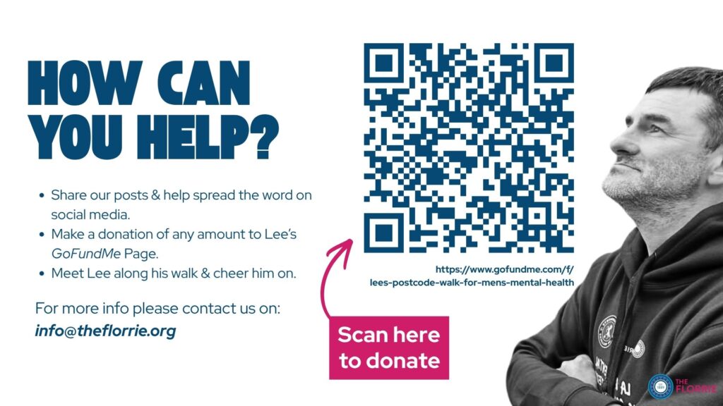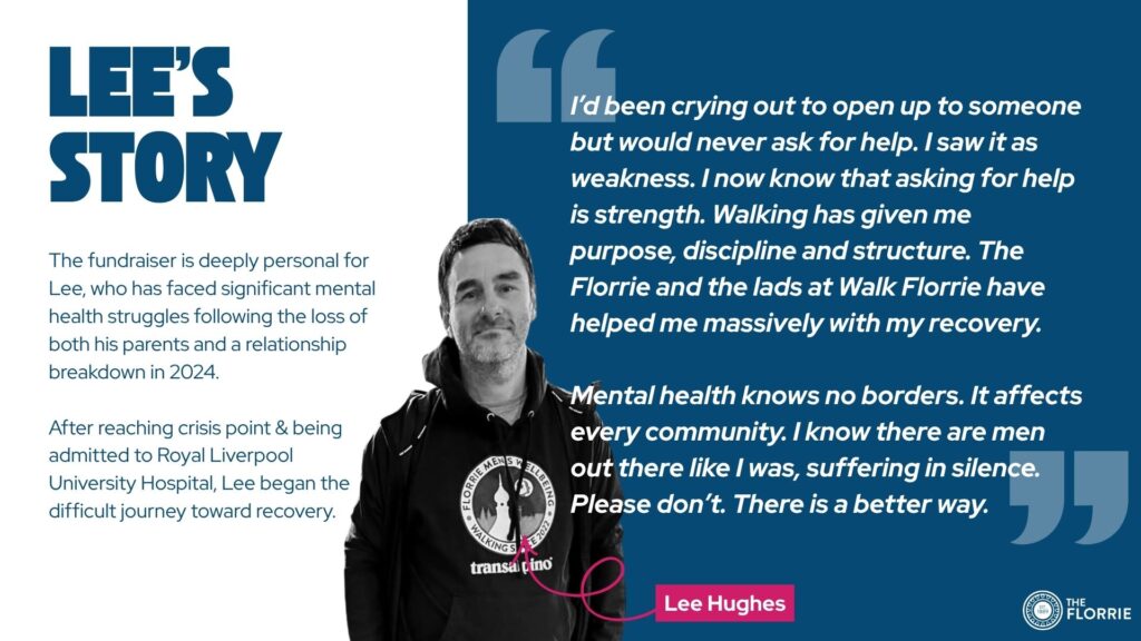 “When we started Walk Florrie in 2022, it was about creating a safe space for men to talk, move and support one another. Lee embodies exactly what this group is about. His courage in sharing his story and taking on this challenge will inspire others to reach out and realise they are not alone.”
